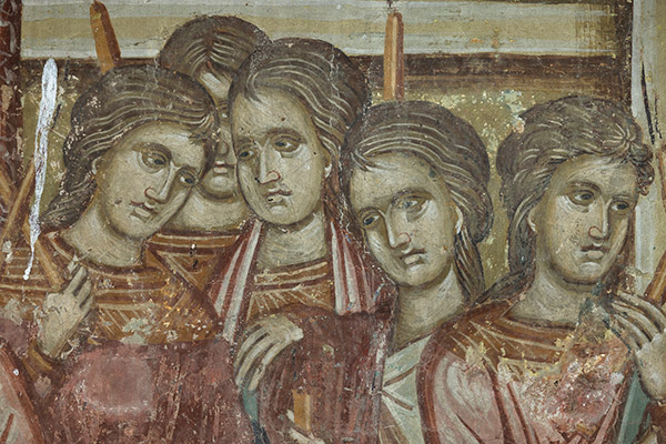 The Cycle of Christ’s Passion, also painted in the sanctuary and the nave, is rich in numerous scenes. In addition to the two great cycles, the cycle of the Mother of God is also painted in the Kučevište church, since the church was initially dedicated to the feast of the Presentation of the Mother of God. Underneath the narrative scenes, a row of busts of holy martyrs is painted, and in the lower zone are the standing figures of saints. Pillars are not painted with any figures, but are simply painted red.