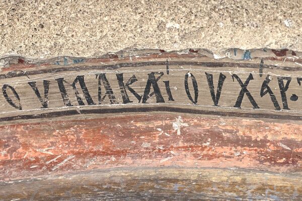 Detail of the inscription with the name of the painter Makarios