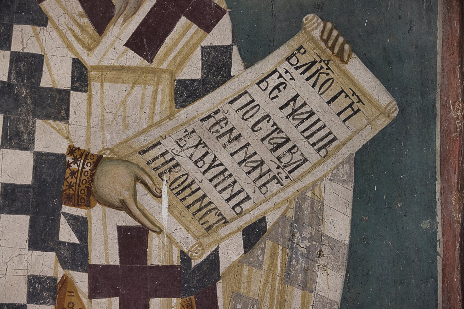 Scroll in the hands of St. Gregory the Theologian