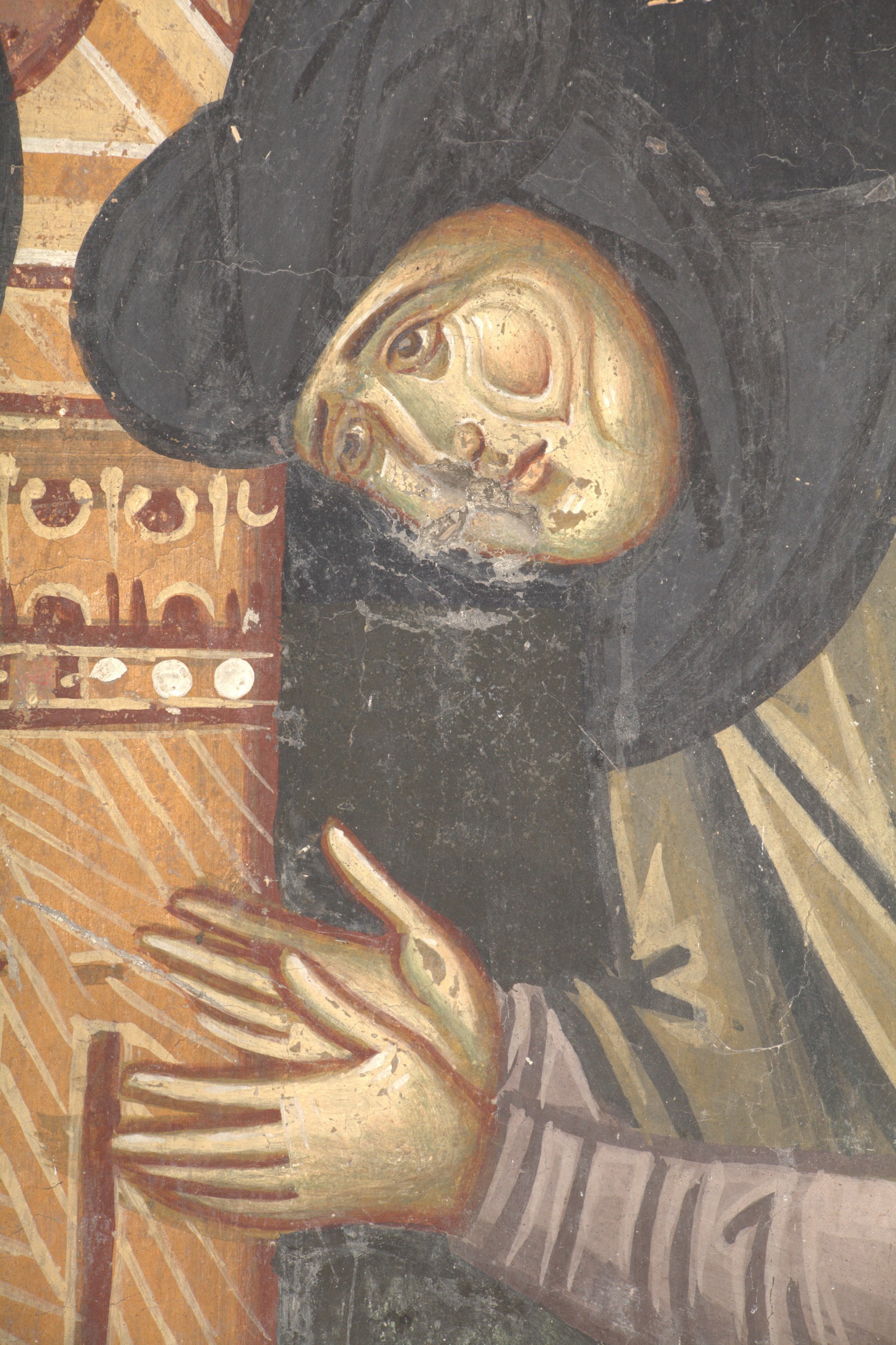 The nun Anatasija (Ana Nemanjic) in proskynesis before the Mother of God enthroned